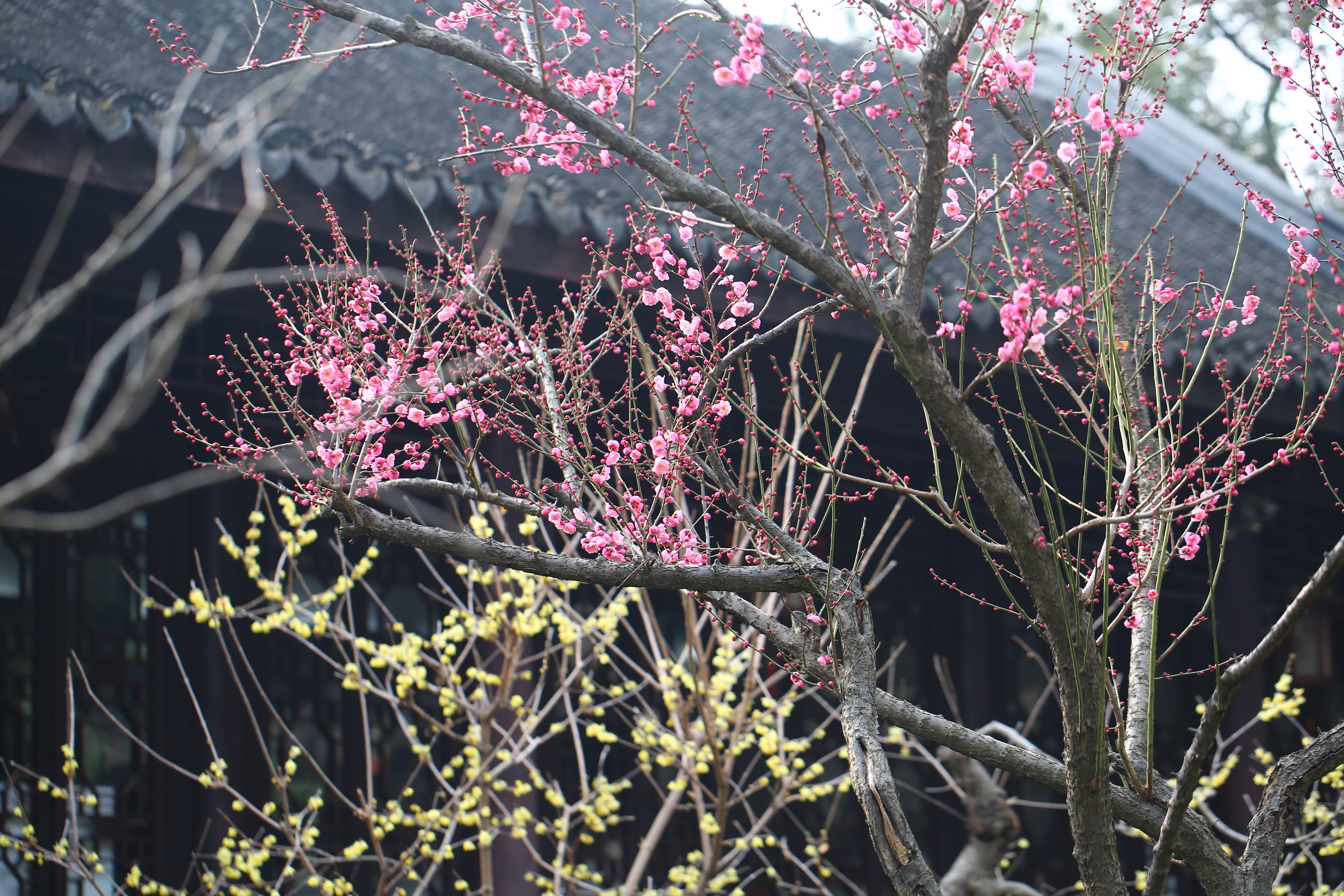 眼下,上海古猗园内梅花悄然初绽,蜡梅正处盛花期,双梅相映成趣、次第争艳,为这座五百年古典园林添满韵味。